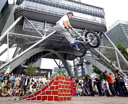 NAGOYA — Twenty skateboarders recently performed at the Osu shopping street in Naka Ward, Nagoya,...