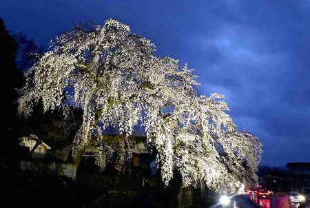 OITA – A Shidazakura weeping cherry tree near Ohara Hachimangu Shrine will be lit up at night thr...