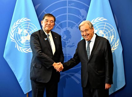 NEW YORK — Prime Minister Shigeru Ishiba and U.N. Secretary General Antonio Guterres held talks i...