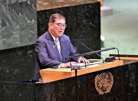 NEW YORK — Prime Minister Shigeru Ishiba strongly condemned Israel’s ground operation in the Pale...