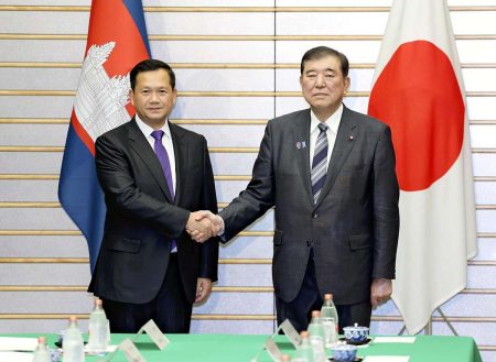 Tokyo (Jiji Press) — Prime Minister Shigeru Ishiba and his Cambodian counterpart, Hun Manet, met ...