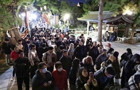 Osaka’s Sumiyoshi Taisha Shrine Bustles with New Year’s Visitors