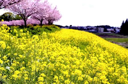 Cherry blossoms and canola flowers are currently in full bloom across various places in Tochigi P...