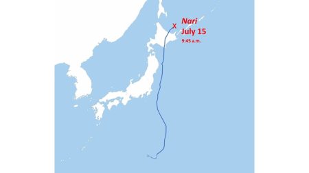 Typhoon Nari Approaching Japan’s Kanto Region; Heavy Rain, Strong Wind Expected on Monday