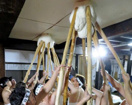 Travel SpotsHalf-Naked Men Pound Mochi against Ceiling at Temple in Yamagata Prefecture; Nearly 400-Year-Old Ritual Is Held to Pray for Abundant Crops