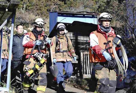 KOFU — A wildfire continued to spread on Friday in Yamanashi Prefecture after having broken out o...