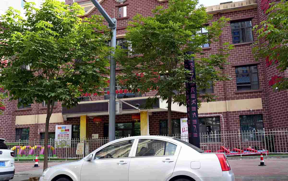 A kindergarten, where many children were served food mixed with lead-containing pigments, is seen in Tianshui, Gansu Province, China, in late July.