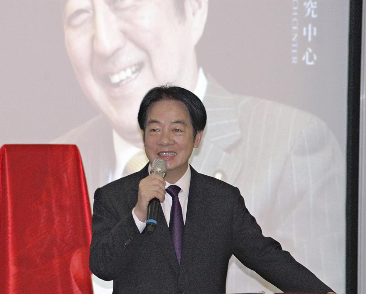 Taiwan President Lai Ching-te delivers a speech at the commemorative ceremony for the research center named after the late former Prime Minister Shinzo Abe in Taipei on Sunday.
